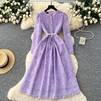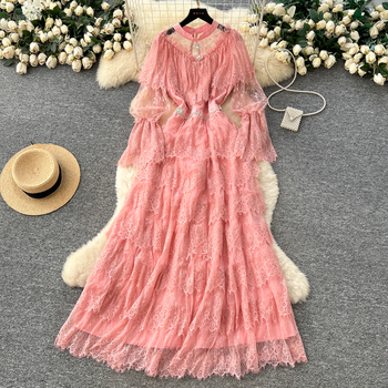 الصيف سترة رومانية ضئيلة عارضة فستان طويل للنساء إمبرطورية الماس تكدرت فستان الدانتيل